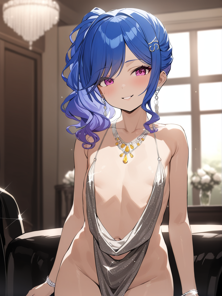 晚礼服(Luxury Handle):st. louis_\(azur_lane\),blue hair,side ponytail, jewelry, revealing clothes, earrings, necklace, hairclip,