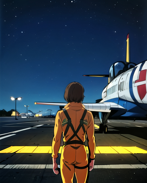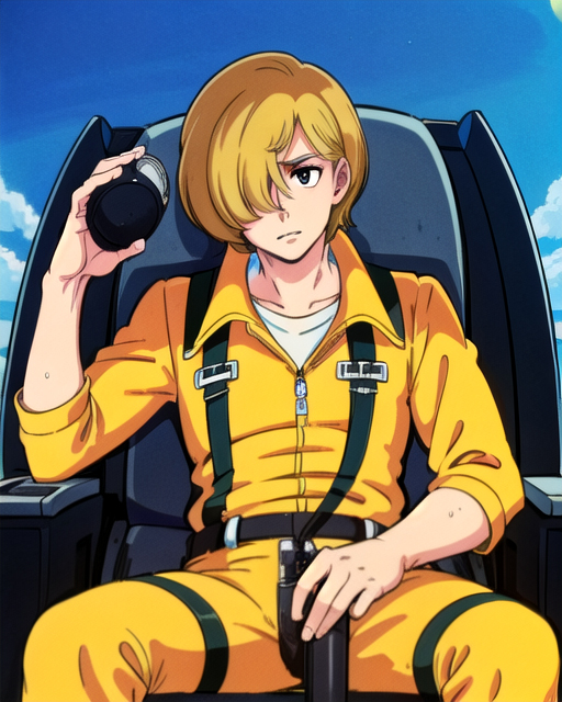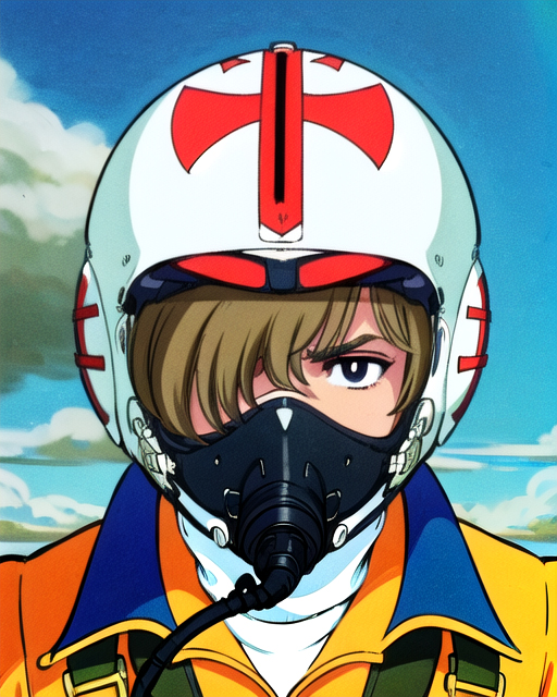 触发词:shin_kazama、飞行员制服、军用喷气机、头盔、头发遮住一只眼睛、拉面杯、面罩、护目镜