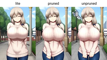• lite: Drastically downsized model. Smallest file size. Still has good quality, but noticeably worse than unpruned and pruned.