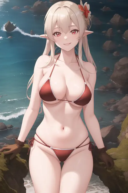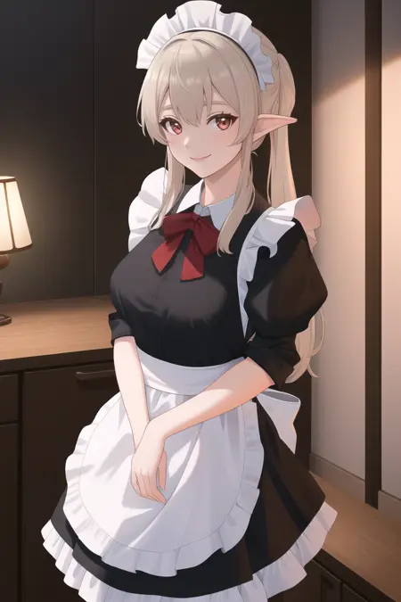 This model was trained using 20 images of her. It was trained on the NAI model so it should work with most anime based models. She doesn't really have a fixed outfit, but the general style is still present.