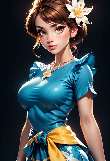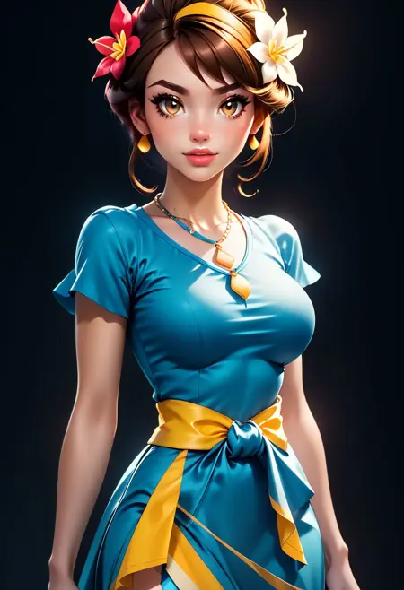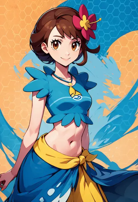 Summer - zzGloria, gloriaSummer, blue sarong, blue shirt, hair flower, jewelry, navel, necklace, official alternate costume