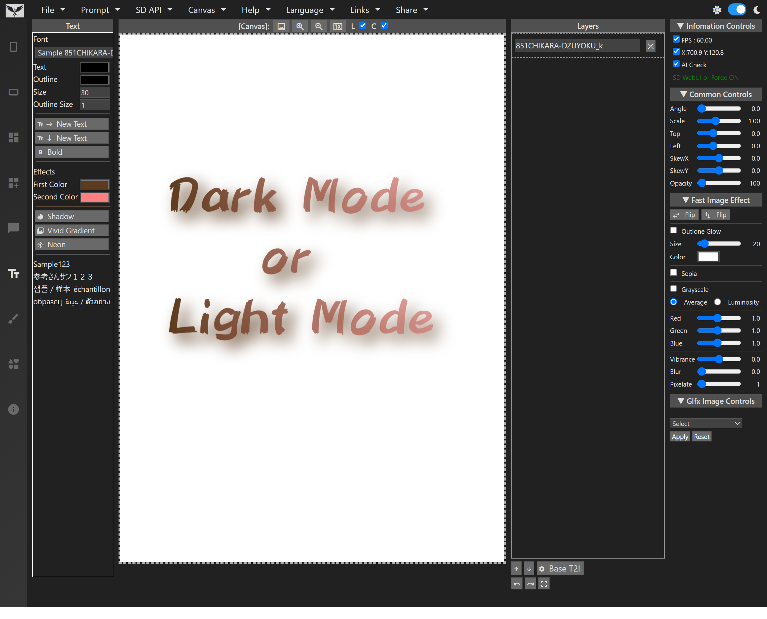 Text2Image:Stable Diffusion WebUI(Forge)を使用してパネル内で直接画像を生成。