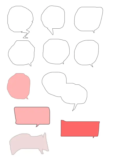 吹き出し:40種類以上の吹き出しスタイル、それぞれ背景色、線の色、透明度の設定が可能。