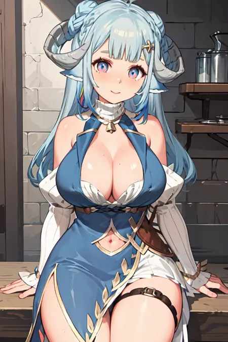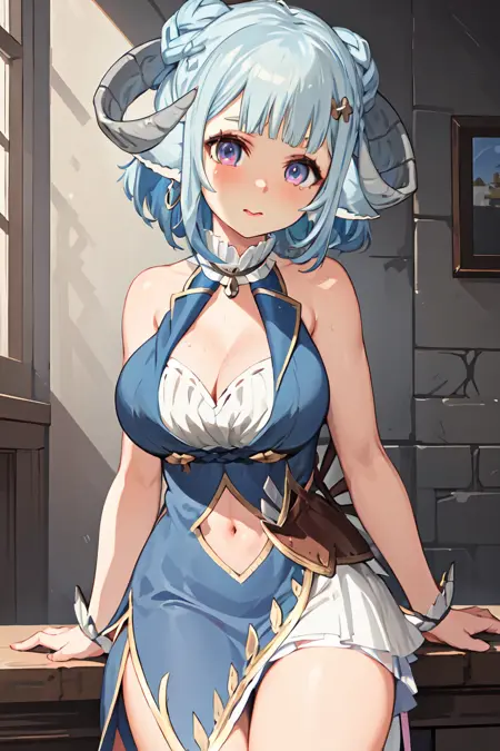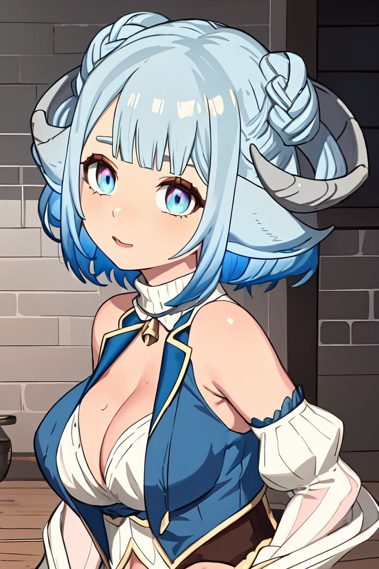 Use waistcoat to control her blue vest(?) on the top half of her body.