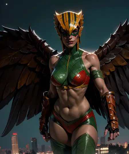 ホークガール、緑の目、赤髪または茶髪、-- バンズ