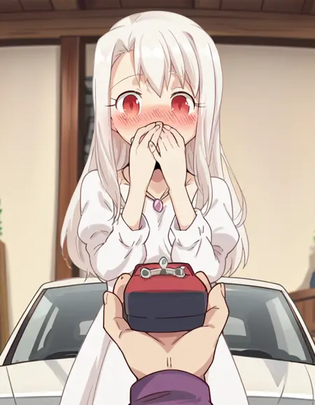 illyasviel von einzbern, long hair, red eyes, white hair,