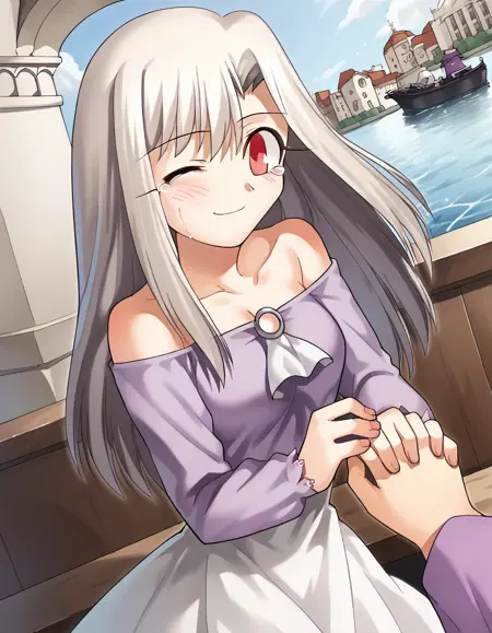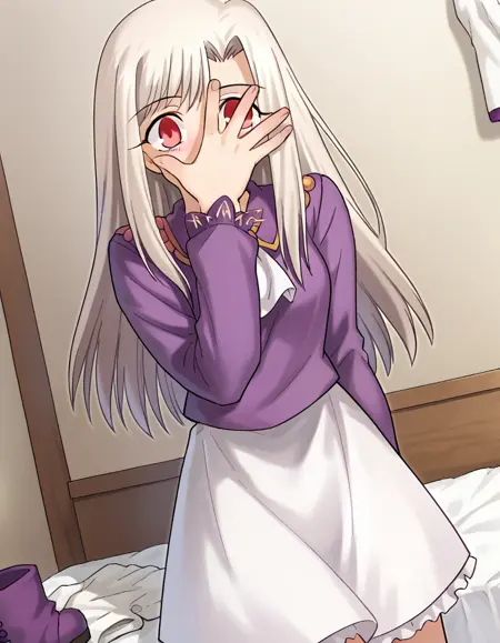 illyasviel von einzbern, long hair, red eyes, white hair,