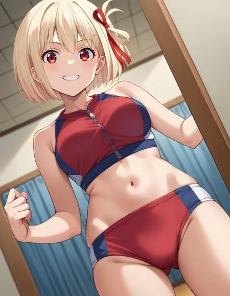 배꼽, 어깨 노출, 허벅지, 복부, 크롭탑, 부루마, 스포츠웨어, 지퍼 풀탭, 빨간 부루마, 스포츠 비키니,