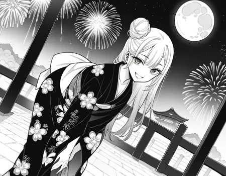 日本服饰,和服,包,腰带,带,花卉图案,浴衣,黑和服,发髻,单发髻,