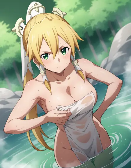 suguha kirigaya,长发,金发,头发遮住眼睛,绿眼睛,马尾,辫子,尖耳朵,双辫,