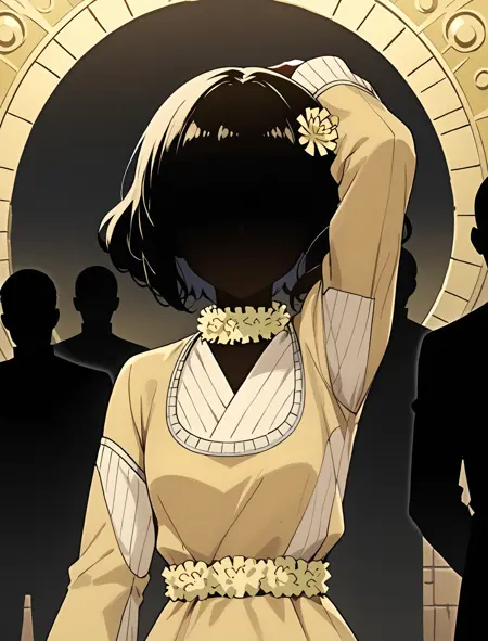 belt, yellow dress, hair flower, yellow flower, necklace, frilled dress