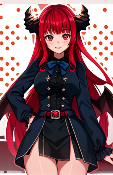 GiftschlangenVT, long hair, breasts, , bangs, large breasts, red eyes, very long hair, red hair, horns, virtual youtuber, blunt bangs, nail polish, demon girl, demon horns,