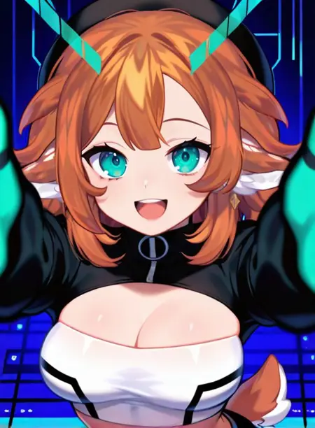 0.7-1HarperStrikesVT, 1소녀, 혼자, 가슴, 짧은 머리, 파란 눈, 큰 가슴, 갈색 머리, 동물 귀, 중간 크기 가슴, 녹색 눈, 꼬리, 땋은 머리, 뿔, 가상 유튜버, 중간 길이 머리, 주황색 머리, 아쿠아 눈, 녹색 뿔, 사슴 꼬리,