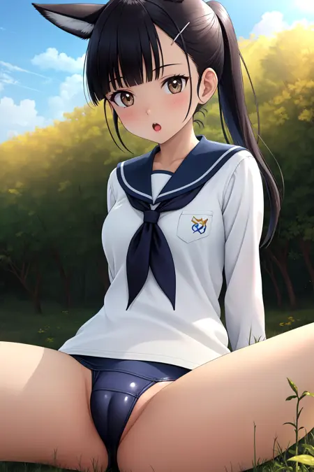 - 长袖,校服,白衬衫,水手领,领巾,serafuku,蓝色领巾,黑色领巾,泳衣,制服,连体泳衣,校服泳衣,衣下泳衣,蓝色水手领,蓝色连体泳衣,蓝色领巾,老式泳衣