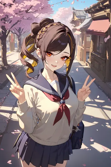 The model was well trained that the default costume can be removed/changed easily even with high lora weight, recommended weight is 0.9