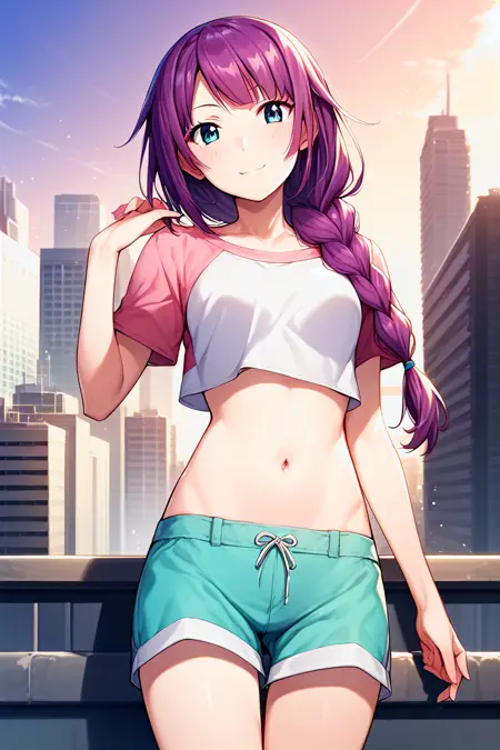 트리거 단어: `히타기 센조우가라, 보라색 머리, 파란 눈`