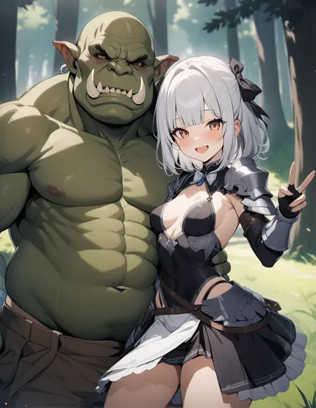 Other prompts include glowing eyes, green skin, monster, interspecies, size difference, etc.