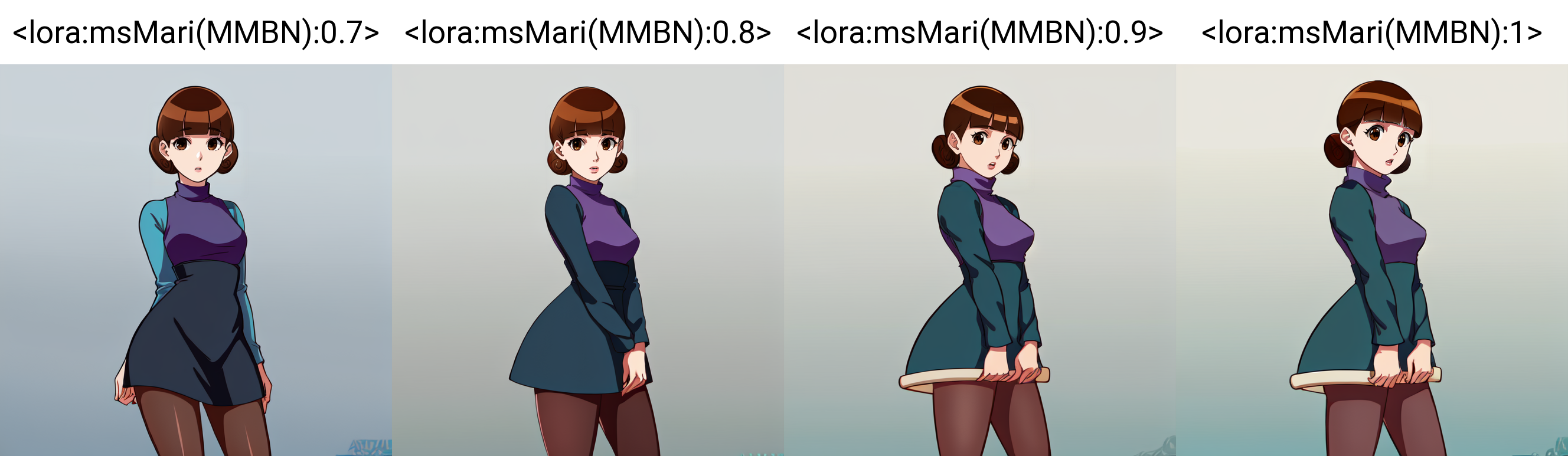 SD 1.5 LoRA在强度0.7至1之间效果最佳;低于此范围,她标志性的肉桂卷发髻可能无法正确生成或完全不生成。