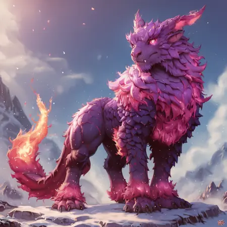 " score_9, score_8_up, score_7_up, score_6_up, score_5_up, score_4_up,(a cinematic shot of a purple burning fantasy mythical Griffin beast, fmb, hyper detailed, 16K, HDR, raytraced, upscaled,:1.2)"