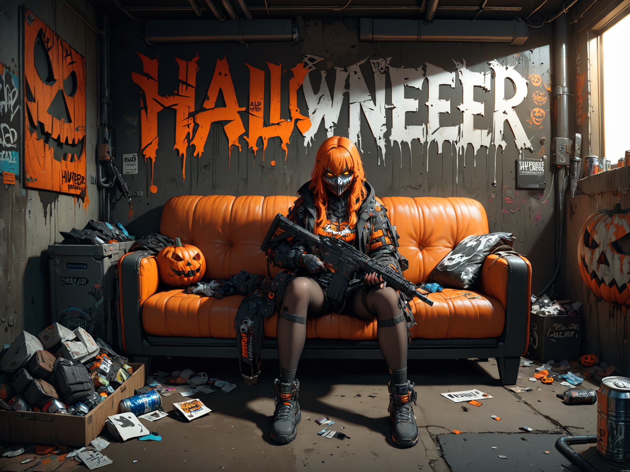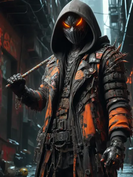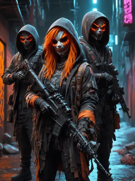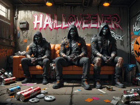 In the dark future of the Shadowrun universe, amidst the neon-lit streets of Seattle, lurks the fearsome Halloweeners gang, an embodiment of chaos and anarchy. Their emblem, a flaming Jack O'Lantern, casts a foreboding glow, mirroring their penchant for pyrotechnics and terror. Adorned in their signature black and orange colors, members often don horror masks, adding a layer of macabre to their already intimidating presence. Originating from the ashes of a devastating Renraku strike, the gang has been reborn under the enigmatic leadership of Nightmare, following the era of Slash-and-Burn. The initiation rite, a trial by fire, symbolizes their phoenix-like resurgence and their unwavering resolve to defy corporate giants. With a notorious reputation for dealing in the darkest BTLs, they channel their aggression through flame-based weaponry, engaging in a relentless quest for dominance. This quest has inevitably led to fierce rivalries, most notably with the Cutters, as the Halloweeners carve out their territory in the urban sprawl, fighting tooth and nail to reclaim their former glory and expand their influence in the criminal underworld.