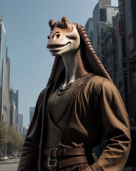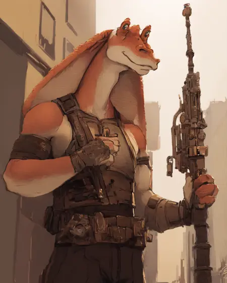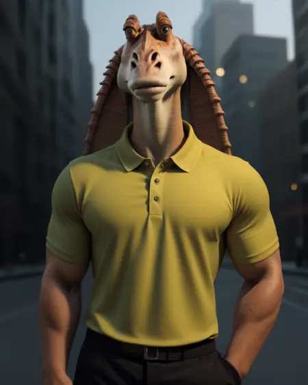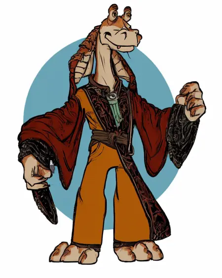 在我完成此LoRA后才发现,有人已在此发布过古冈人/Jar Jar LoRA。我未与之进行直接对比测试,但你可能发现它在某些模型上表现更好或更差。本LoRA并未明确标注“Jar Jar”,但默认生成的古冈人外观相似。