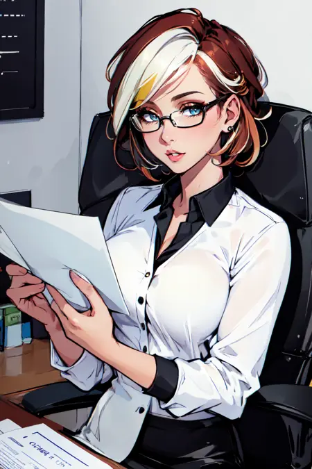 트리거 캐주얼: 1소녀, 단발, 다색 머리, 파란 피부, 팔꿈치 장갑, 레오파드, 스트랩리스, 꼬리