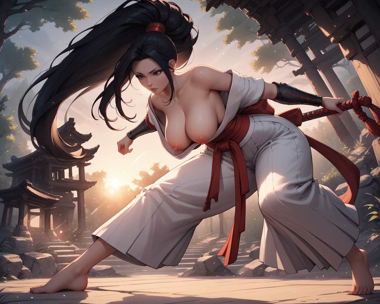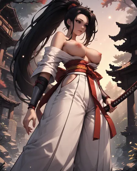 Hi there! I used to draw a character kind of like this and wanted to see about bringing her to AI. She's inspired from Haohmaru from Samurai Showdown and honestly, mostly a cosplay/costume you all can use. Meant to show her boobs so she's NSFW lol :D Sword / Katana is hard to prompt and can be a little tricky but patient and impainting will help XD This was just mostly meant to be fun and wanted to release it and see what you all think of her.