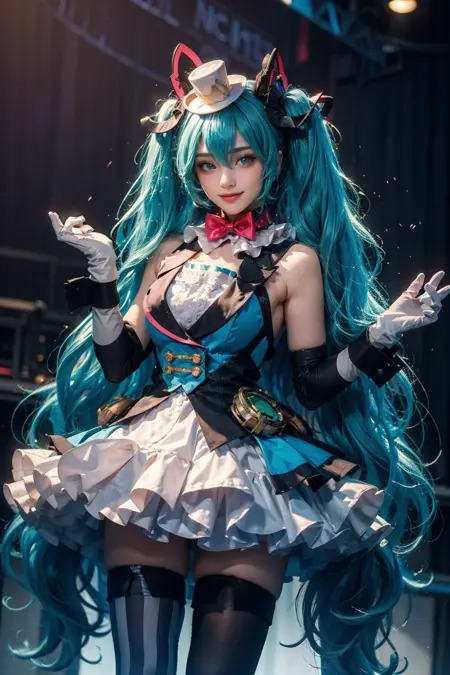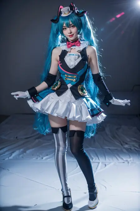 本帖是初音未来 cosplay 服装 LORA 的合集。由于是 cosplay 服装 LORA,在使用二次元大模型时角色还原度可能不佳,但在 2.5D 模型中却有出人意料的优秀效果~ 可以试试~