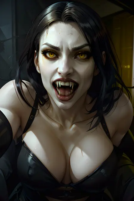 Both meet the bar I set for release: gives vampires fangs, but also gives people fangs without other vampire characteristics (skin, eyes, clothes). I also gave an example for giving fangs to a werewolf transformation. 1.1 even lets you draw fangs in Cyber Reality 4.2! I recommend a "photorealism" prompt even though it's a realistic output as it helps break the strong realism bent of the checkpoint. You can also use a photorealistic/art checkpoint, then use a realistic checkpoint in Refiner or Hires Fix.