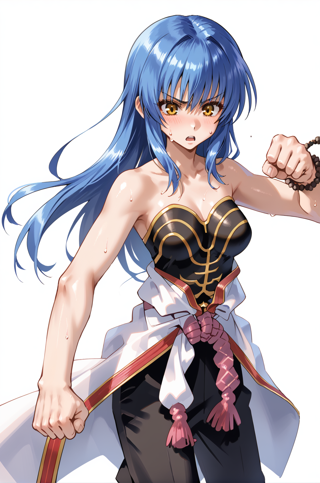 prompt: mnkRo, pants, cleavage cutout, bead bracelet, jewelry