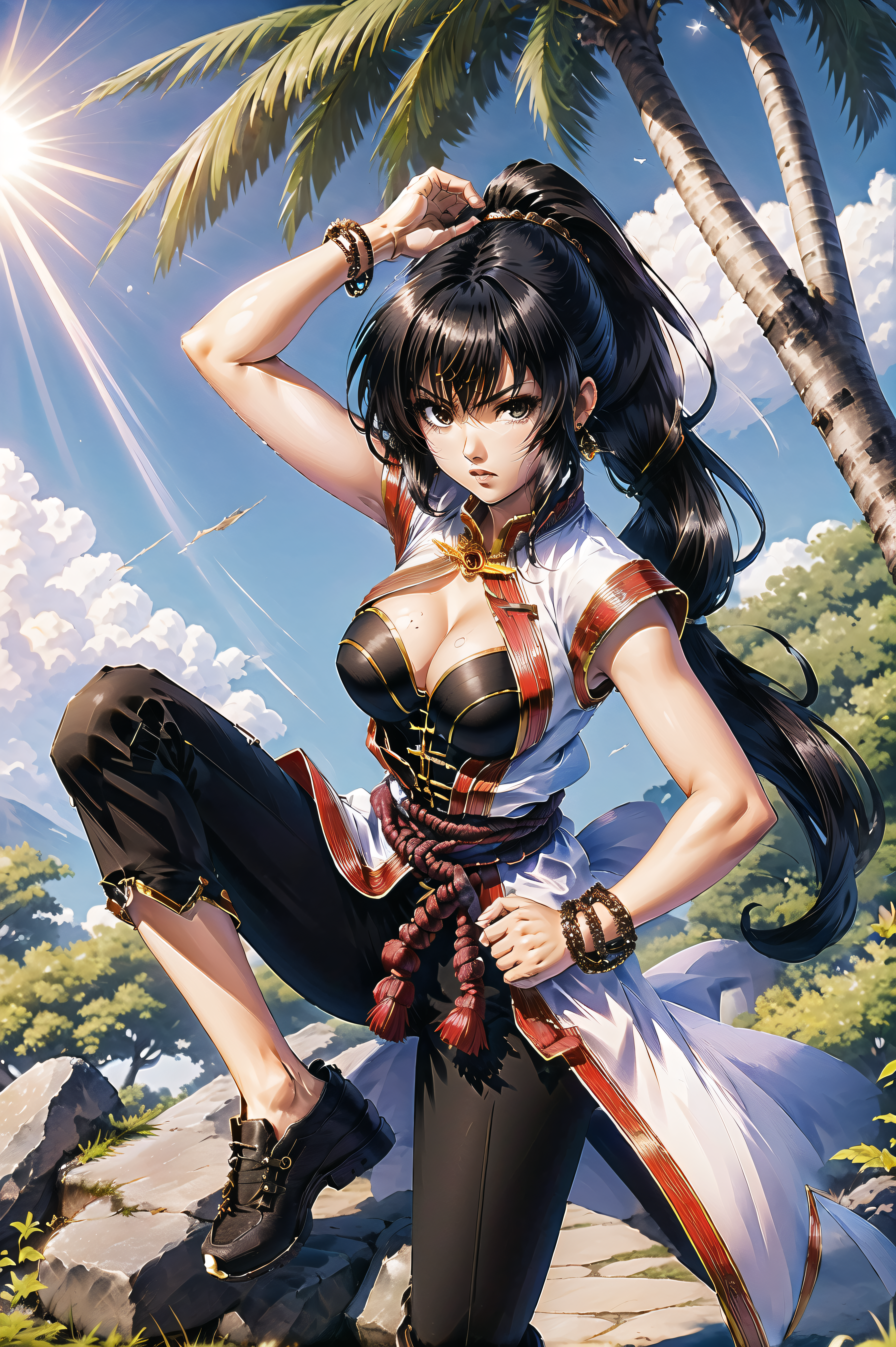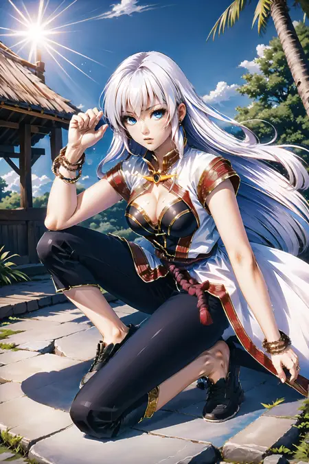 prompt: mnkRo, pants, shoes, cleavage cutout, bead bracelet, jewelry