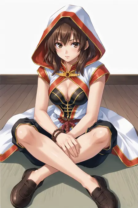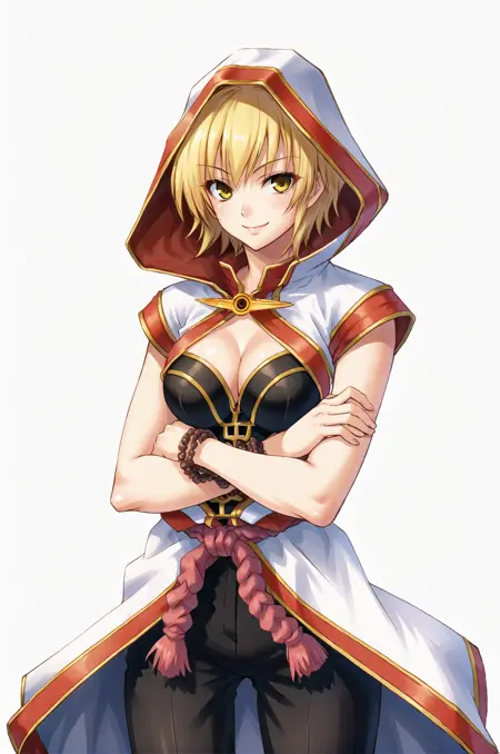 prompt: mnkRo, black capri pants, white coat, clothing cutout, strapless, bead bracelet, hooded coat, shoes