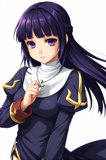 프롬프트: priestRO, 긴 소매, 팬티후스, 가터 벨트, 긴 드레스, 퍼프 소매, 터틀넥, 수녀, 목걸이, 십자가 목걸이