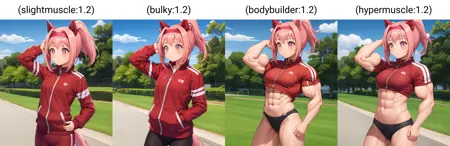 (복부), (이두근) 또는 유사한 태그와 함께 사용하면 과도하게 거대해지지 않으면서도 근육의 윤곽을 잘 드러낼 수 있음