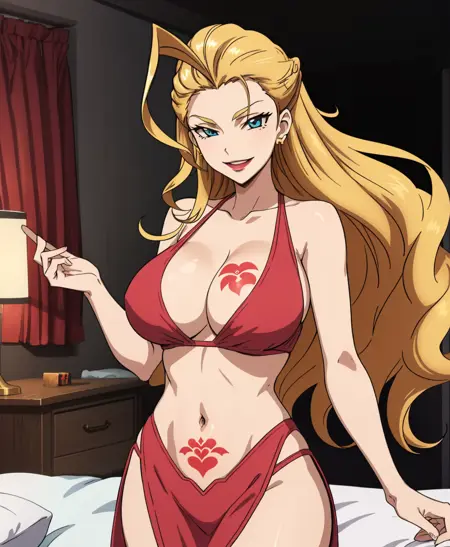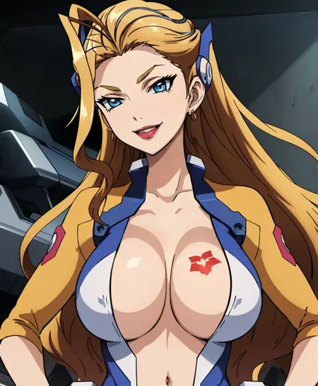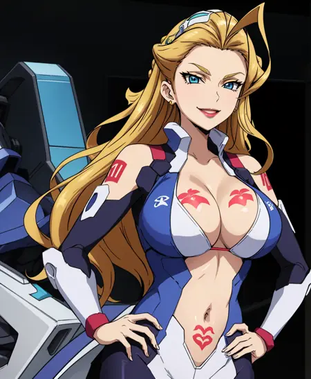 cazola,ahoge,longhair,blondehair, breast tatoo,blue eyes,maturefemale