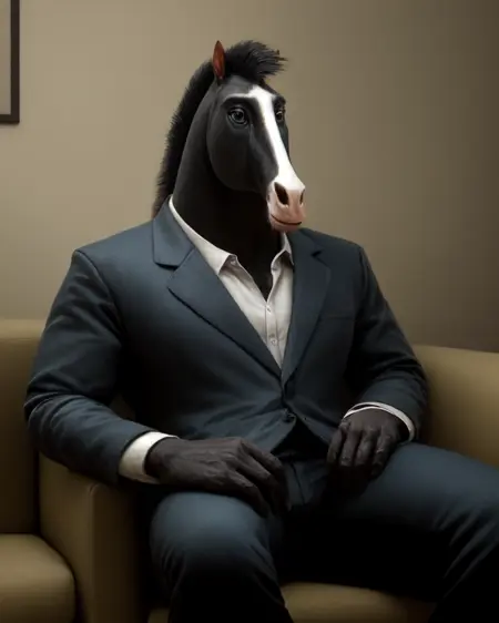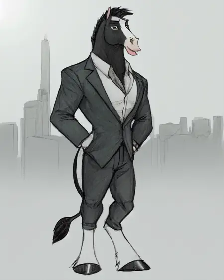 「khanhorse」でトリガーし、「黒い毛皮」を強化し、ネガティブプロンプトに「白いカウンターシェーディング」を追加すると効果的です。