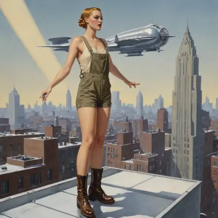 This lora generates images in the style of decopunk and streamline moderne. The effect is very subtle and may need a lot of prompting to get images that are novel. Take a look at the metadata to see some of the training captions