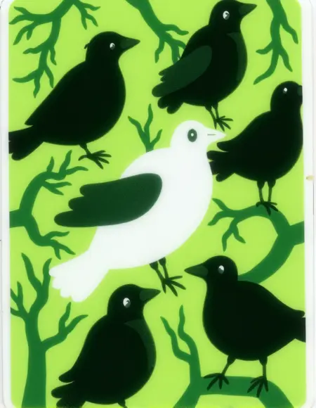 各ディキシットカードには、美しく、超現実的で、しばしば奇抜なイラストが描かれています。これらの画像は視覚的に魅力的でありながらも、解釈の余地が広く、プレイヤーがアートワークに基づいて多様な創造的な物語を構想できるように設計されています。挿絵にはさまざまなシーン、人物、あるいは抽象的な概念が描かれており、プレイヤーの想像力が思いっきり広がるよう誘います。