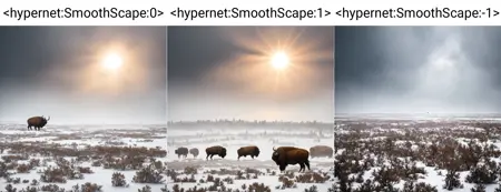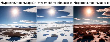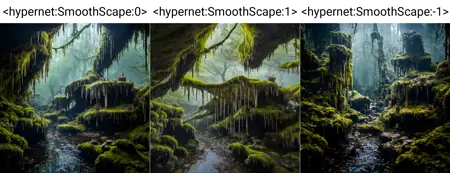This hypernetwork transforms landscapes into "smoother" variants and more "dreamy" at positive strength (1.0), while adding roughness, crispiness, and more dirty detail at negative strength (-1.0)! Example images show both so you can compare. Trained on deliberate_v5 model, but tested and works on other models just as well.