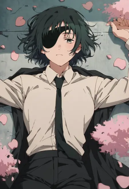 Base prompt: h1m3n0,1girl, black hair, short hair, eyepatch,