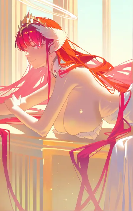 프롬프트: 긴 머리, 빨간 눈, 허벅지까지 오는 양말, 빨간 머리, 깃털 날개, 천사 날개, 드레스, 여러 개의 날개, 시청자 바라보기, 허벅지 부츠, 가슴 노출, 전신, 매우 긴 머리, 흰 신발, 어깨 노출, 흰 날개, 흰 드레스, 앞머리, 흰 허벅지까지 오는 양말