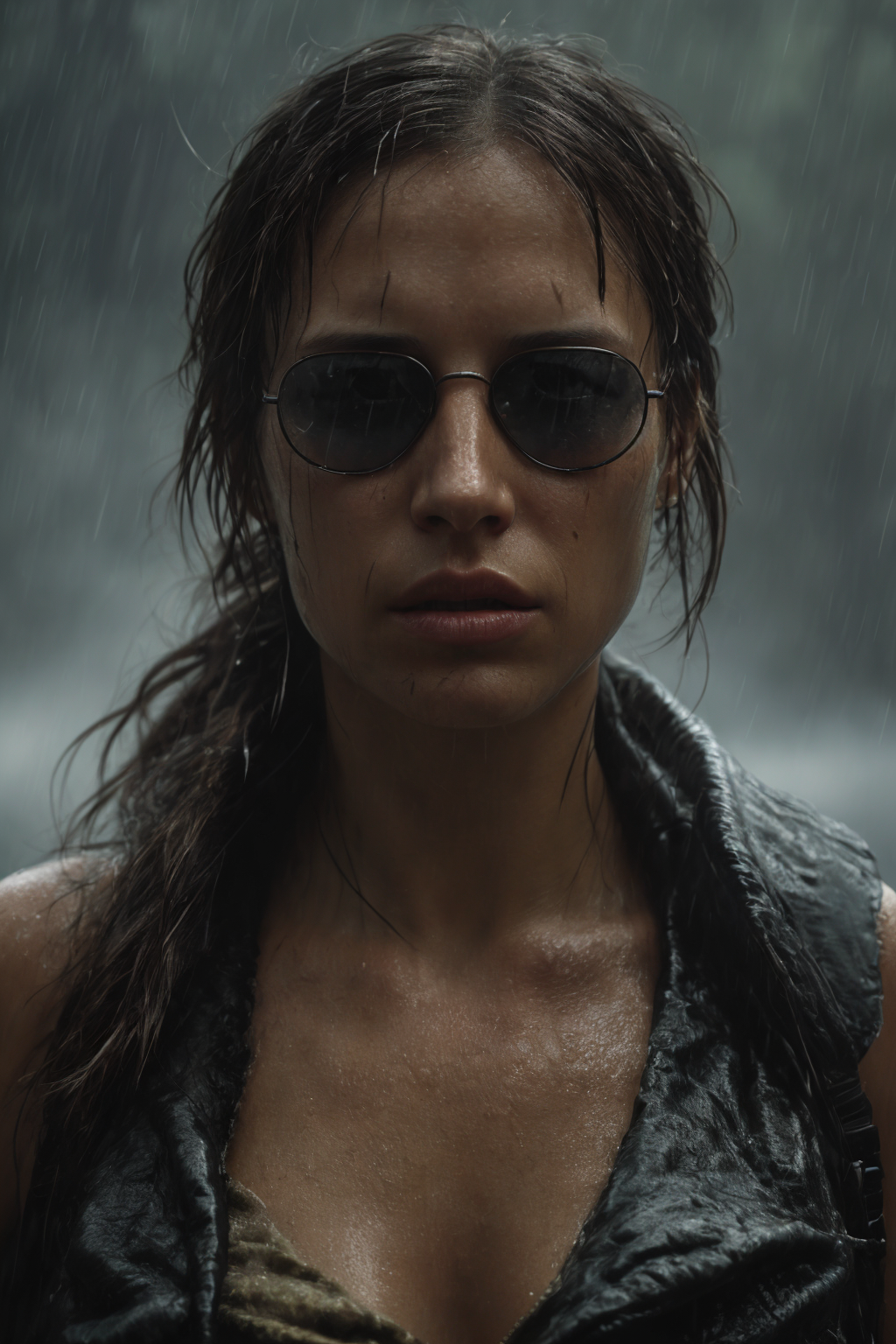"Under The Rain" aims to create image/scene generations in a rainy weathery, wet surfaces, waterdrops, etc. These scenes will be influenced also by the Depth of Field also trained on purpose there to get a bit more realistic and less "plastic".