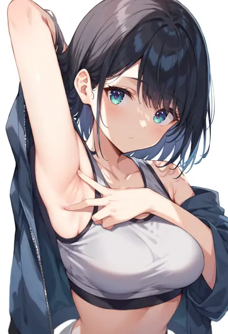 50%ぐらいの確率で人差し指と中指で腋を広げるポーズになります。