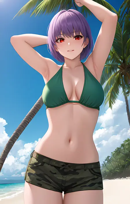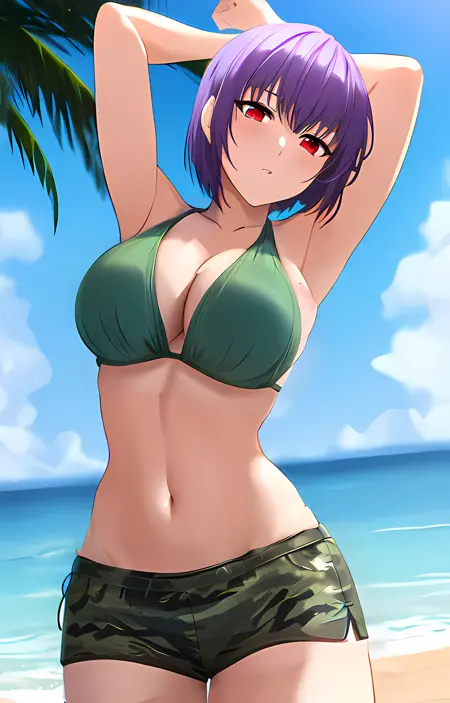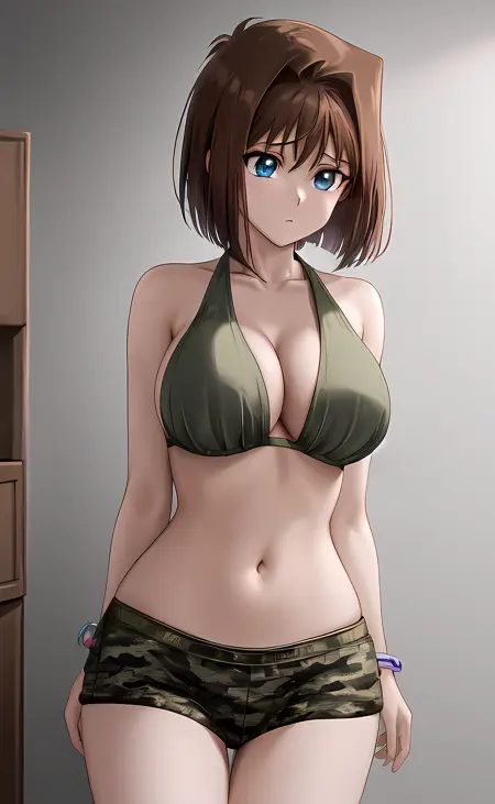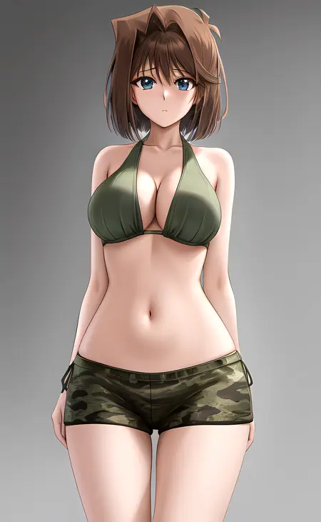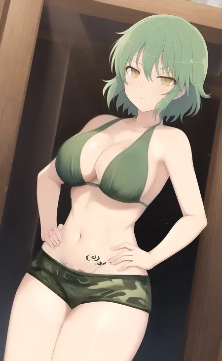 建议在应用此LoRA并使用修复功能前,先生成一张身穿绿色两件式泳装(含短裤)角色的图像。