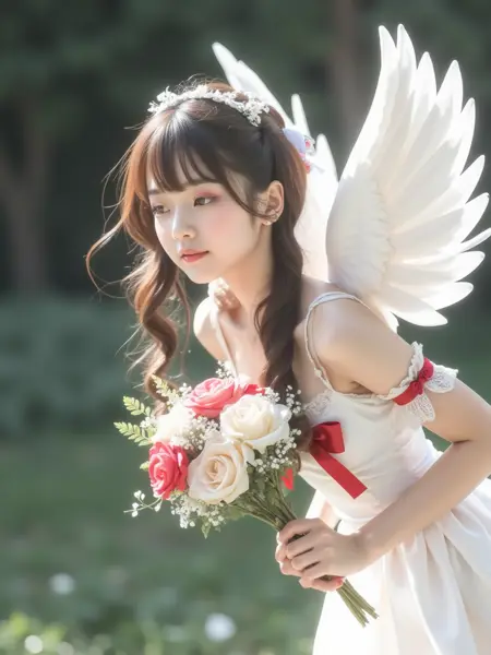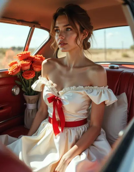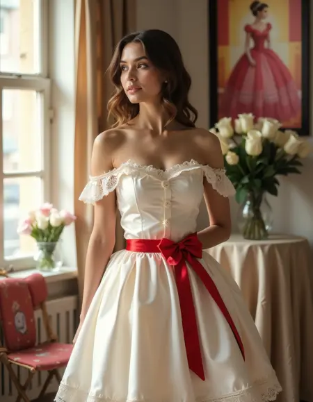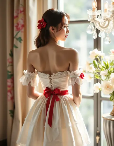 FOR FLUX Trigger word : white ribbon dress,red ribbon,detached sleeves,bare shoulders