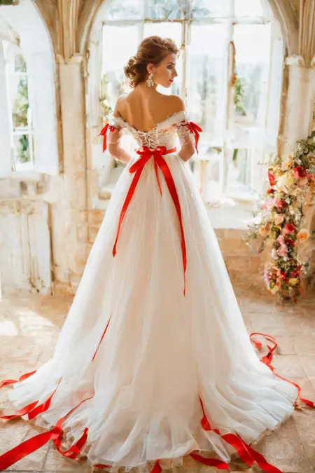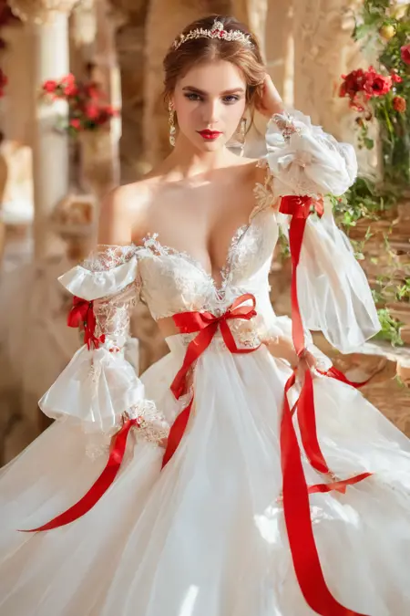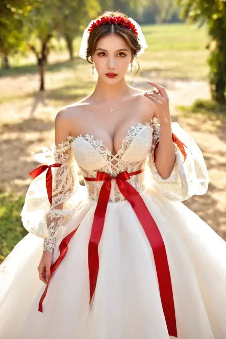FOR FLUX Trigger word : white ribbon dress,red ribbon,detached sleeves,bare shoulders