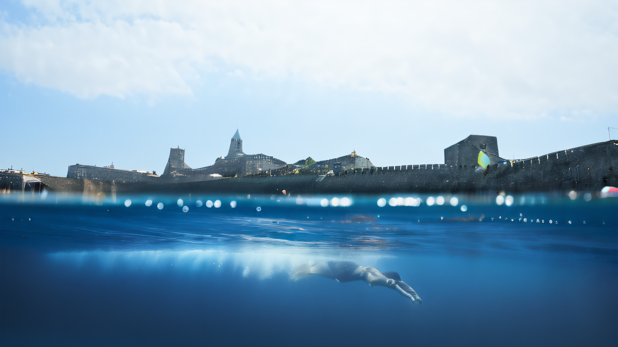 It does what it says on the tin; Split-shot, Over-under or Half-in-Half-out. I don't think the style has a definitive name. Check the samples if you want prompt ideas.