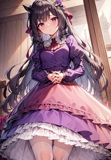 - ハorseガール、馬尾、黒髪、紫の目 など
