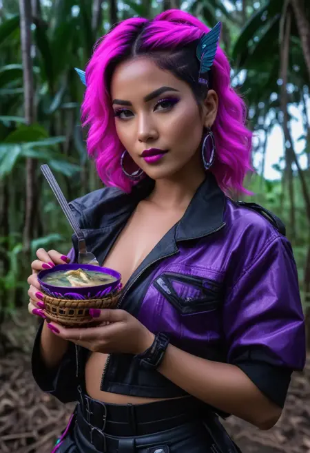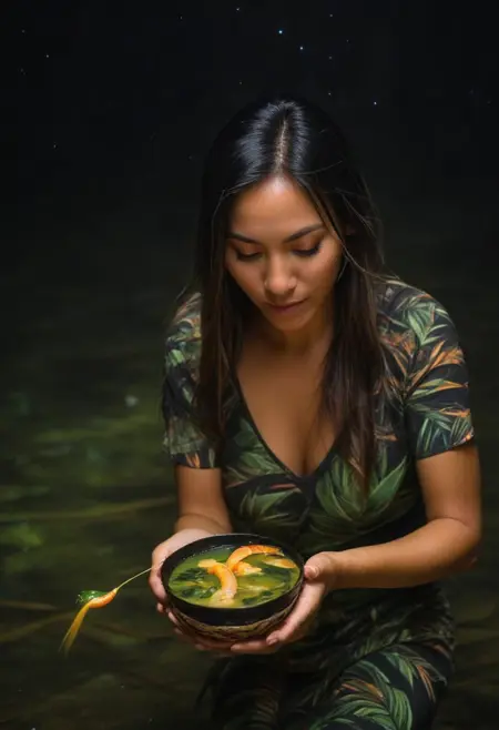 The example images were generated with variations of "tacacá" and "woman holding tacacá" followed by different prompting. I noticed that it sometimes doesn't work with certain prompts, though.