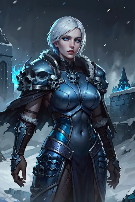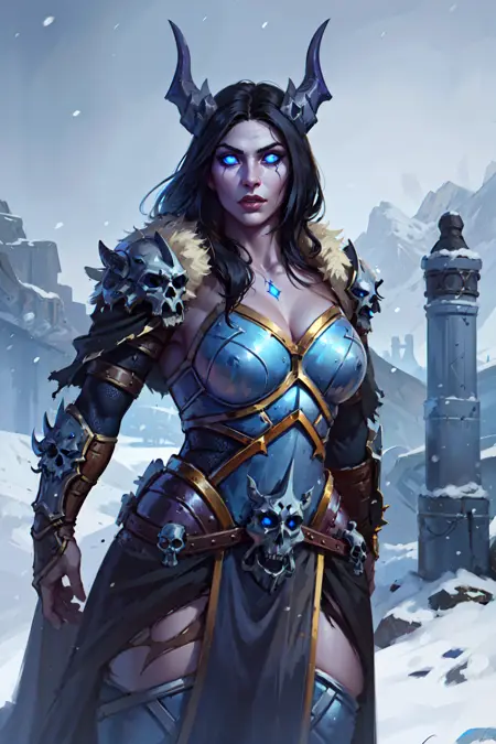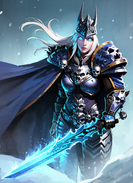 フロストDK: wowdk, 輝く青い目, 頭蓋骨鎧, 雪 など
